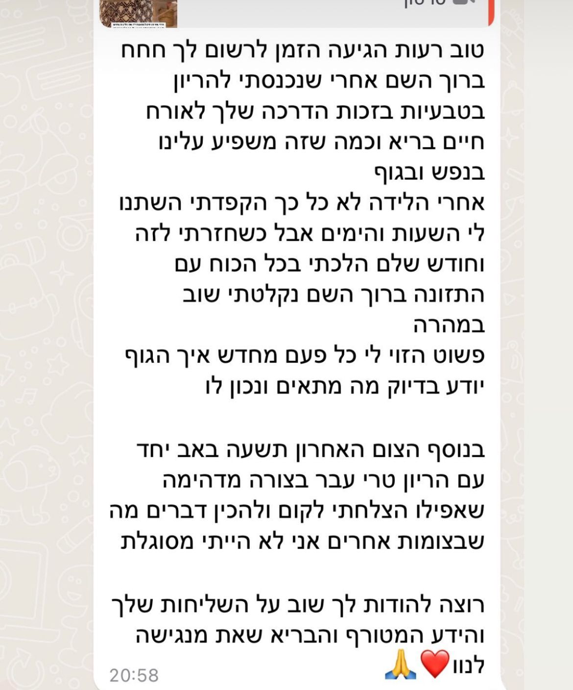 אני מאמינה שהגוף הוא מקדש: אם נטפל בו נכון, נקבל אנרגיה ובריאות.